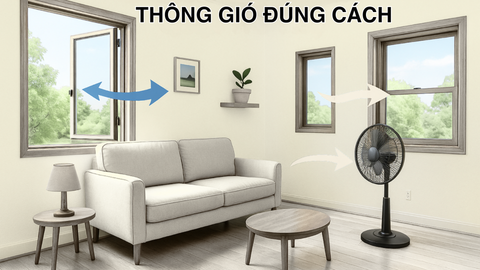 💡 Mẹo nhỏ: Nên thực hiện thông gió 2–3 lần mỗi ngày, mỗi lần khoảng 10–15 phút, đặc biệt vào buổi sáng sớm hoặc chiều tối khi nhiệt độ ngoài trời dễ chịu.