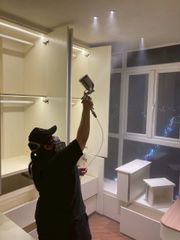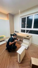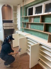 Mặc dù lịch trình thi công nội thất khá gấp rút và không kịp hoàn thành lắp đặt trước ngày chuyển vào, chúng tôi đã hoàn thành thi công phun phủ vào thời gian buổi tối.