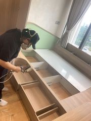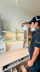 Lần này, vì nhận được yêu cầu tạo ra môi trường kháng khuẩn, nên chúng tôi đã tiến hành thi công phun phủ lớp khoáng khuẩn ở các vị trí thường xuyên có người chạm vào như tay nắm cửa, mặt bàn làm việc, ... Đồng thời, chúng tôi cũng đã thực hiện đo lường chỉ số liên quan đến mức độ sạch sẽ.